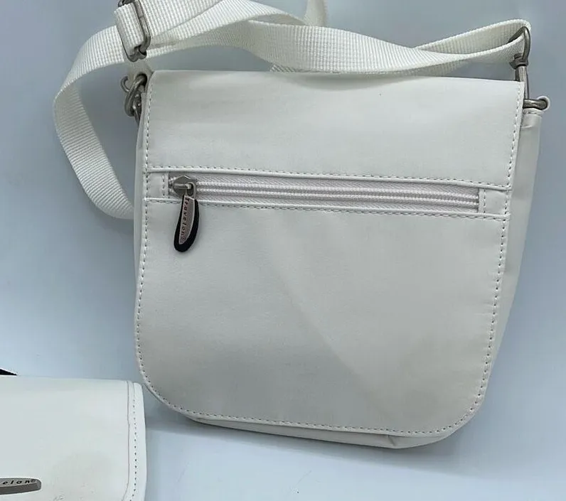 Vintage Travelon travel crossbody duos. The smallest is a crossbody cash ID wallet. Tuck strap in back pocket and use it as matching wallet in small crossbody belt bag. . The other crossbody is small but has a place for everything. Back snap flap conceals the belt loops to use as a waist pack. Front zippered pouch, lifts up to large open compartment. Small zippered change pouch has a magnetic clasp and opens to card ID area. One more zippered pouch behind that. One mark on front of wallet crossbody.