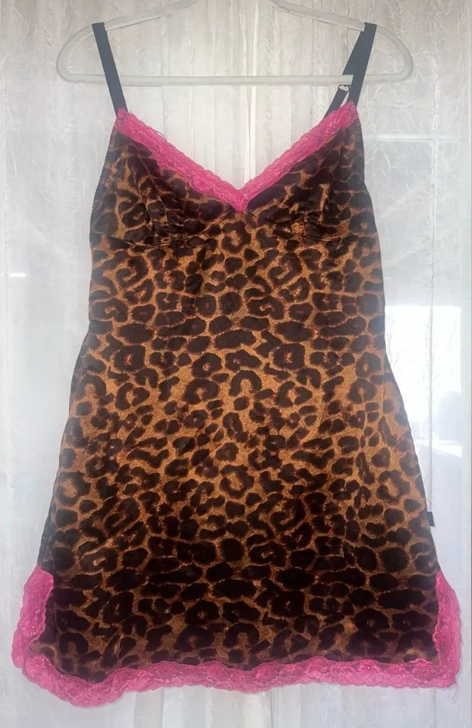 Vintage Tripp NYC leopard print satin slip dress with hot pink lace trim in size medium in EUC. Ver... Show more