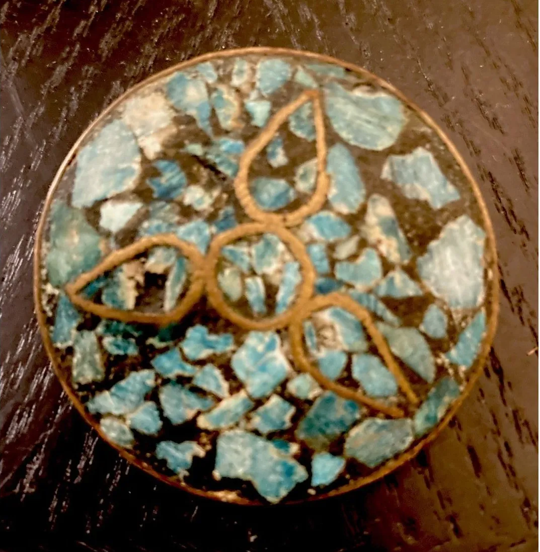Vintage Turquoise Brass Inlaid Brooch Pin Jewelry 1960s C-Clasp‎ Made in India - $21 - From Natalie
