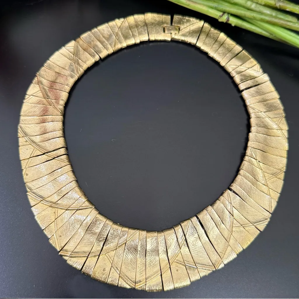 . Pre-owned with normal wear from use consistent to age. There are TARNISHING on metal at the back near the clasp as shown , overall in great shape. Please refer to the photos for details, flaws and measurements. You will receive exactly as pictured! Feel free to ask any questions. All sales are final. No returns. Thank you for considering our listing. Disclaimer: Due to the unique nature of vintage items, imperfections and flaws are normal and consistent with age, use, and display. Cleaning and polishing are the buyer’s responsibility, and I leave the item “As Is!” The provided photos are actual images of the item. Zoom in on the photos for closer details.