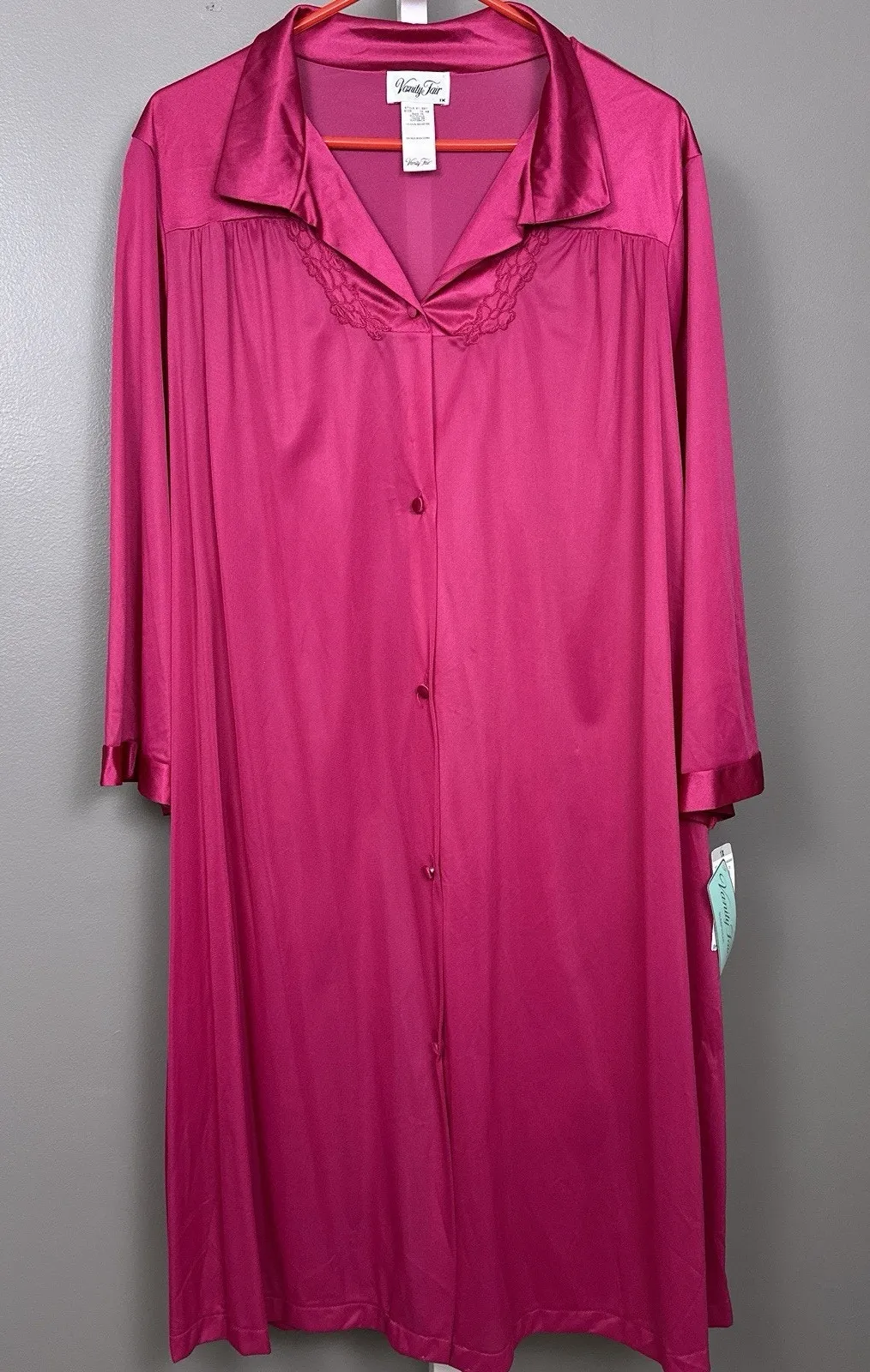 Listed is a vintage Vanity Fair housecoat button up robe, size 1X, style 31-807. 100% nylon. Pretty... Show more