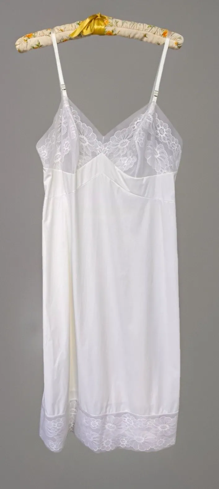 Vintage VANITY FAIR Lingerie Slip 100% Nylon Antron 36" Dupont USA White Lace Size undefined - $20 - From Tamara