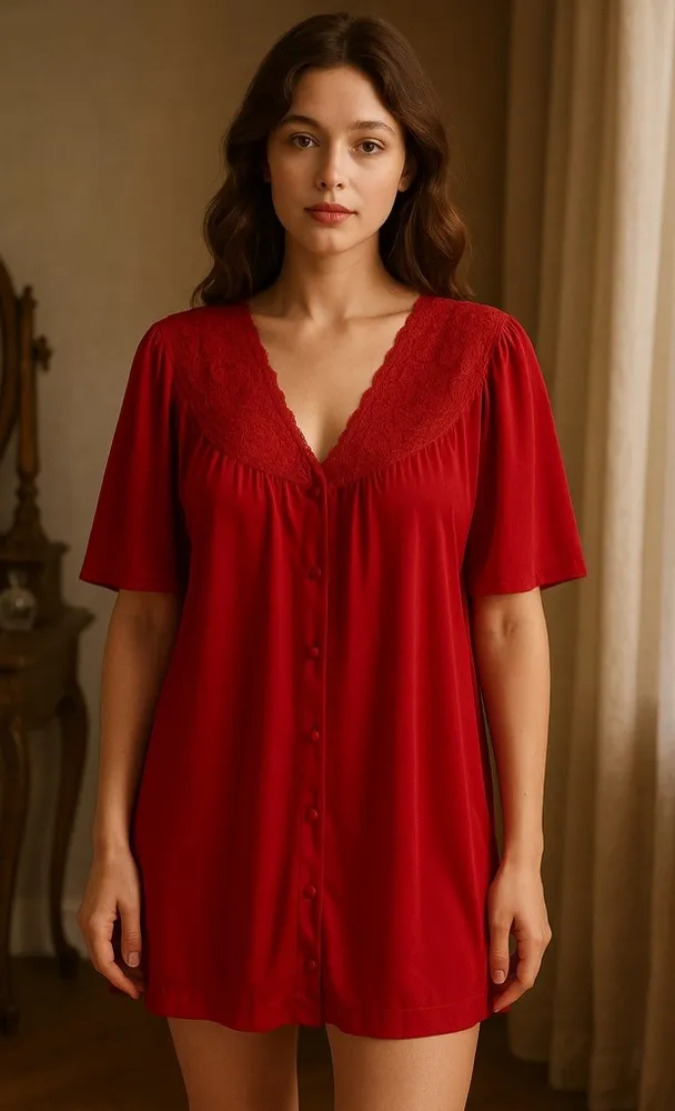 Vintage Vanity Fair women’s red pajama top, size L. Button front, lace yoke, short sleeves, satin feel, USA made. Perfect for nightwear or vintage collectors. Vintage Vanity Fair top Vanity Fair nightgown top red lace pajama blouse women’s vintage sleepwear USA made Vanity Fair satin pajama top retro nightwear top L vintage boudoir blouse button up nightgown top red vintage sleep shirt Vintage Retro Cottagecore Boudoir Pinup Coquette Romantic Classic Sleepwear Lounge Collectible Vintage #VanityFair #VintageVanityFair #VintageSleepwear #RedPajamaTop #Nightwear #BoudoirStyle #CoquetteAesthetic #CottagecoreFashion #VintageUSA #VintageLingerie #RetroNightgown #SizeLarge
