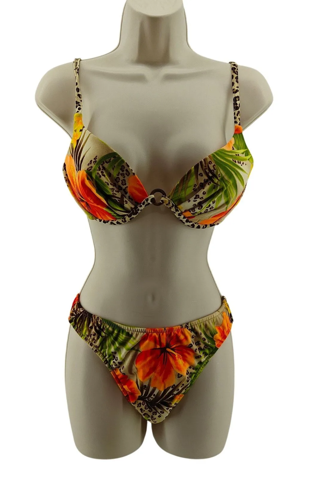 Vintage Venus Brazilian Hibiscus Leopard Bikini Set -Wild Leopard Print with Stunning Orange Tropic... Show more