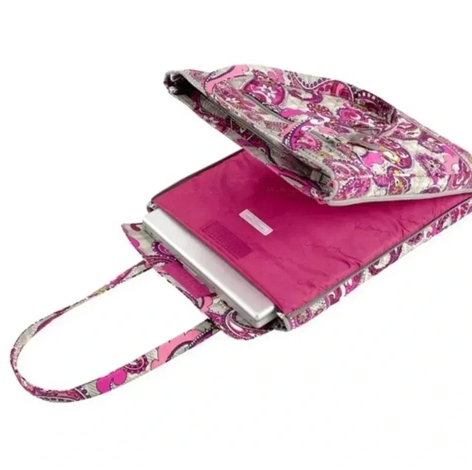 Pink & purple paisley and plaid print Tote with laptop storage case perfect for work or school. GUC... Show more