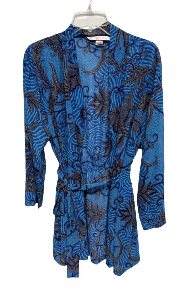 Excellent condition Satin feel sheer belted robe Blue paisley floral print Vintage Victoria's Secr... Show more