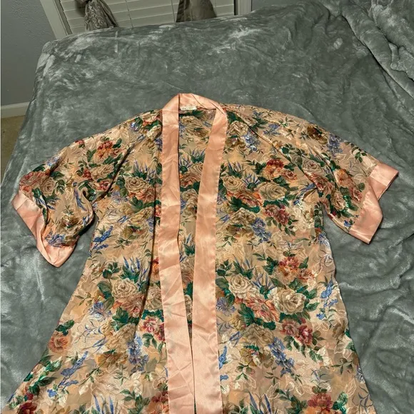 Vintage Victoria's Secret Peach Floral Satin Robe Pink Size undefined - $50 - From Ashleigh