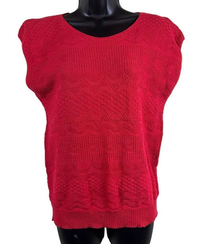 Vintage Village Green 100% cotton Red Knit Sweater Vest Size M Good condition with minor imperfecti... Show more