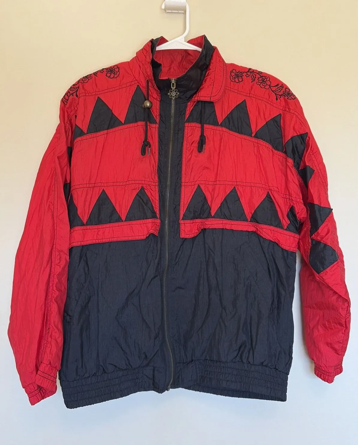 Vintage VTG Lavon Red/Black Floral Geometric Windbreaker Jacket Womens Medium Red - $43 - From Hilary
