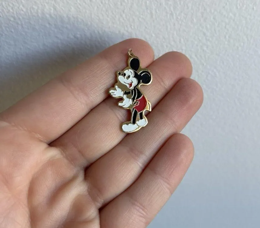 This Vintage Walt Disney Mickey Mouse Enamel Gold Tone Necklace Pendant is a collectible piece featu... Show more