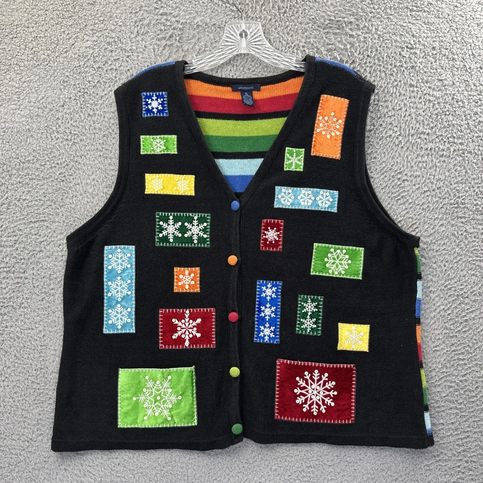 Vintage Westbound Sweater Vest Snowflake Rainbow Holiday 90s Retro Women's XL Black - $35 - From Lena