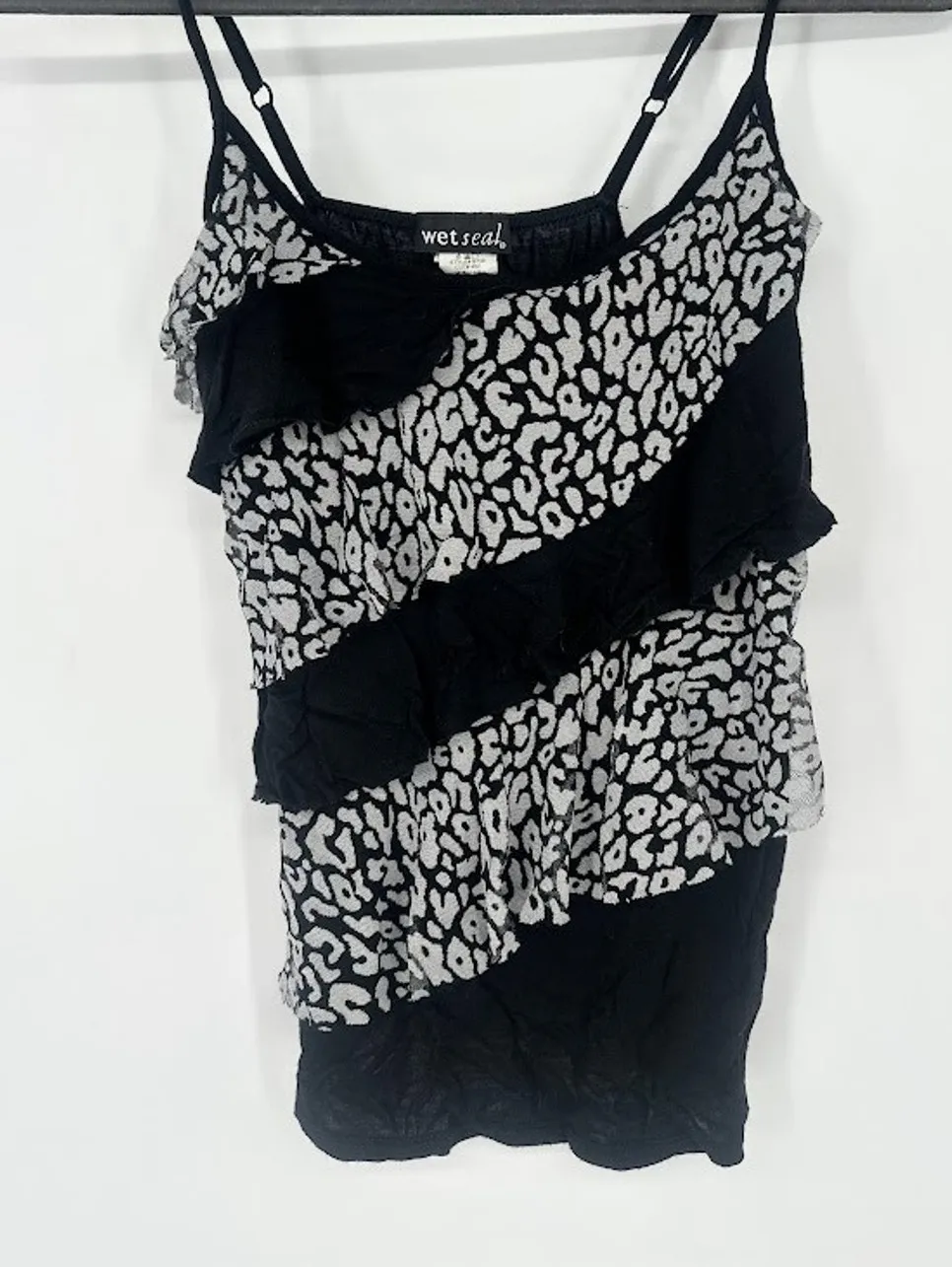 Vintage Wet Seal Womens Y2K Ruffle Tank Top Size XS Gray Black Goth Grunge Club Adjustable strap, M... Show more