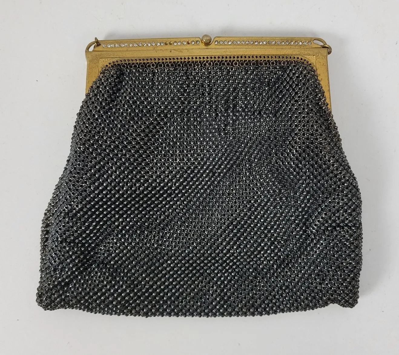 Vintage Whiting & Davis Womens Evening Handbag Black Gold Metal Mesh Kiss Lock Product Description: Measurements:6"x6" - Brand: Whiting & Davis - Condition: Gently Used - Black Metal Mesh - Evening Handbag Clutch - Kiss Lock - Color: Black/Gold Thanks for shopping with me today! I ship on orders received by 3pm each day. Most items are lovingly used and therefore show appropriate signs of wear. I do my best to make note of any irregularities with *. Please feel free to inquire