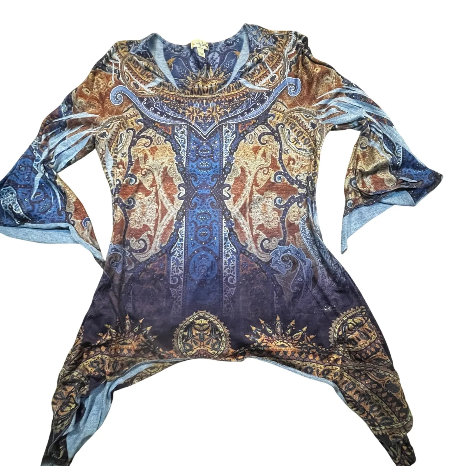 Vintage Women XL Boho Paisley Embellished Top Goth Coquette Fairycore Bell Blue - $28 - From Helen