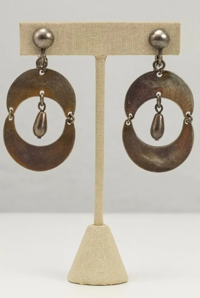 Vintage Womens Chunky Silver Tone Open Bead Dangle Clip On Earrings 80s 90s Y2K‎ - $45 - From Briahnna