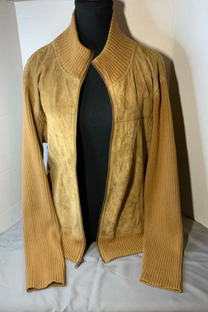 Vintage women’s Eddie Bauer Seattle Suede Washable Tan Leather Jacket Mock neck Tan leather suede... Show more