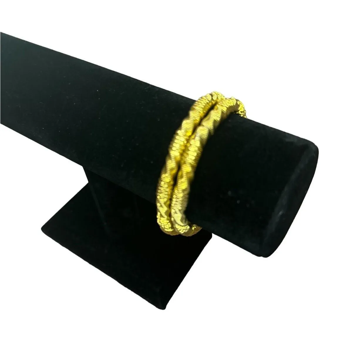 Elevate your style with these vintage gold-toned stretch bangle bracelets. Perfect for any occasion, these classic fashion jewelry pieces add a touch of elegance to your ensemble. Flexible fit ensures comfortable wear for most wrist sizes. • Vintage gold-toned design • Stretchable for easy wear • Classic fashion accessory • Perfect for any occasion Features: • Bracelet Size: Womens 2.5 inches Condition: Pre-Owned Good
