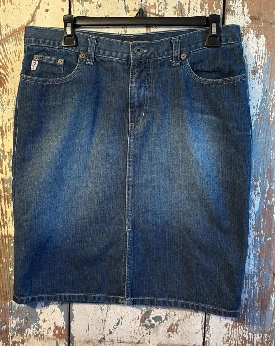 Vintage women's GUESS Denim Knee-length Skirt size 30 Front split in EUC!!