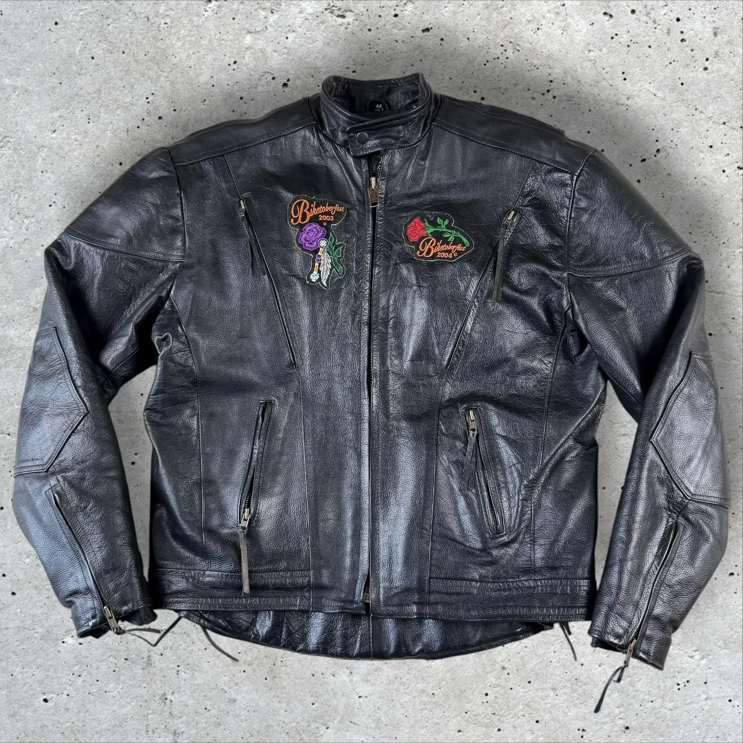 Vintage Women's Leather Biker Jacket Sz 44 (Large) Harley/Biketober Patches Moto Black - $145 - From Patchworked