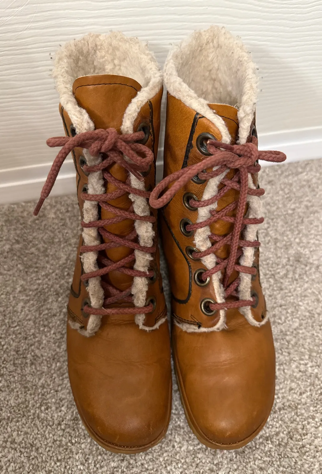 Vintage Women's Sandler of Boston Leather Shearling Combat Boots Size: 10M Leather uppers Cream shea... Show more