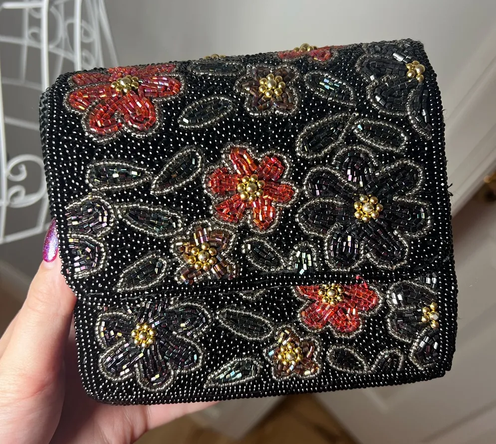 Vintage Y2K/90’s Lord And Taylor Seed Beaded Floral Bag Black Red Shoulder Strap - $27 - From LeeAnna