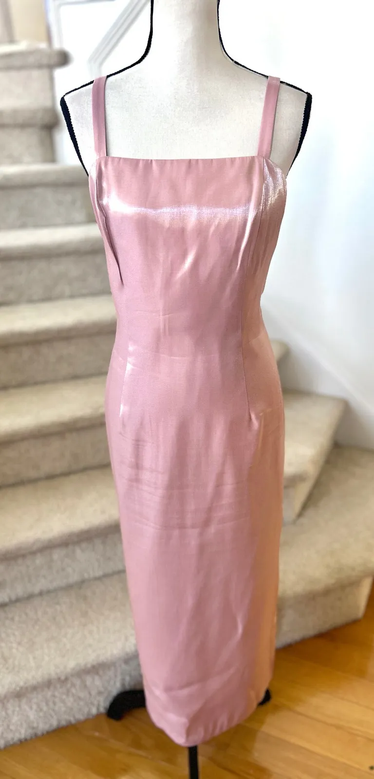 Excellent condition. Vintage y2k mauve pink iridescent midi sheath gown. Square neck, back zipper, s... Show more