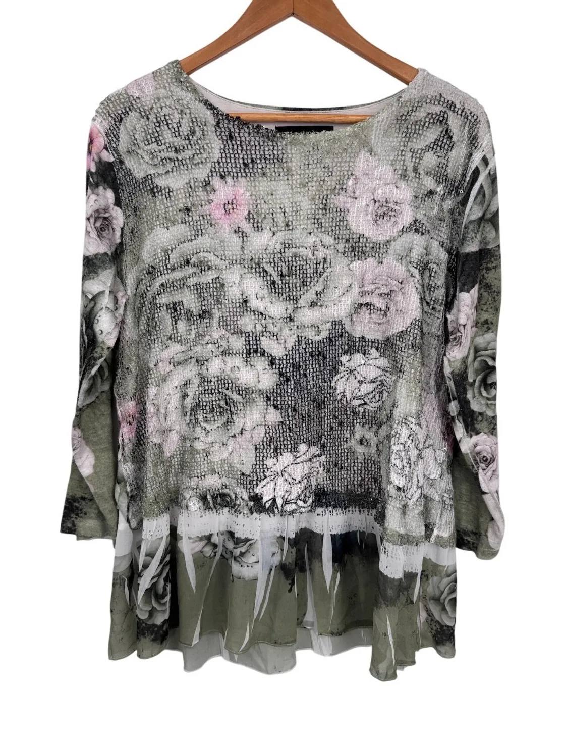 The Vintage Y2K Ali Miles Top in Women's size Large (no size tag, based on measurements in photos) is a romantic and whimsical green blouse made from polyester. It features a floral pattern, long sleeves with roll tab details, and a round neck with a pullover closure. Perfect for casual occasions during the warmer seasons of summer, fall, and spring, this blouse embodies the fairy-like charm of the Y2K era. Made in China by the brand ali miles, this top is a unique addition to any woman's wardrobe for those who appreciate vintage fashion with a touch of nostalgia. Excellent preowned condition - no rips, stains, or tears. From a smoke free, pet friendly home. Approximate measurements in photos. Seller Notes: -Same/Next Business Day Shipping -Smoke Free & Pet Friendly Home