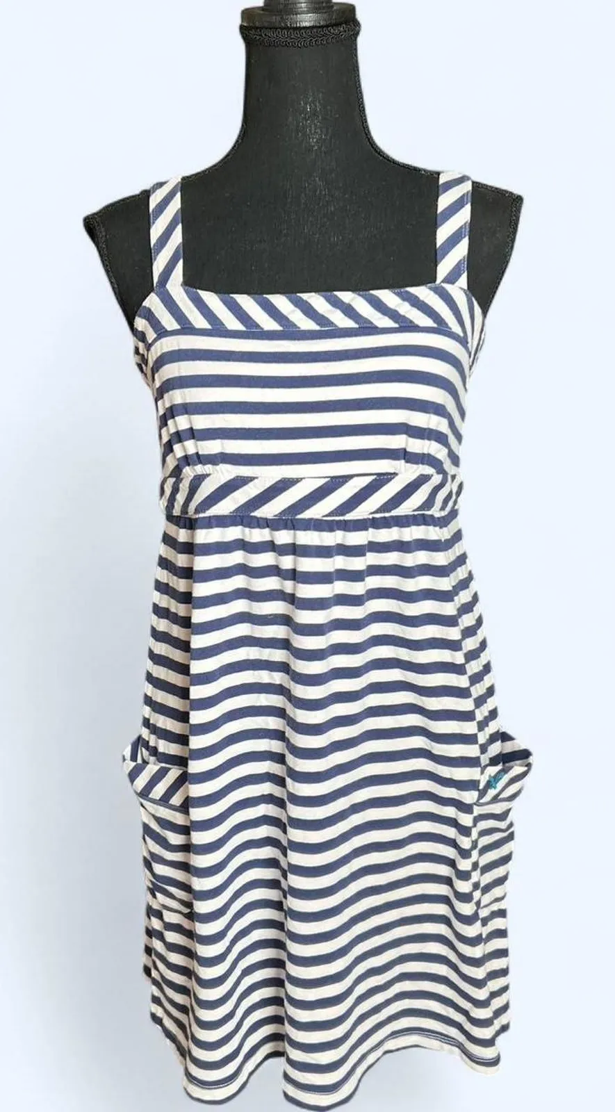 Vintage Y2K American Eagle blue and white striped babydoll dress with pockets Size Medium 31 inch w... Show more