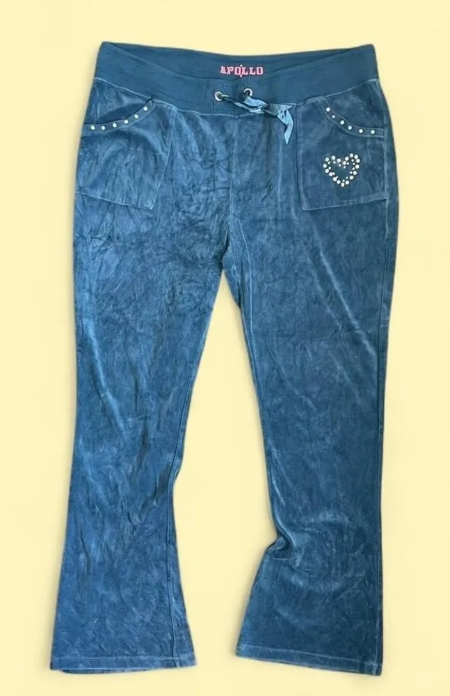 Vintage‎ Y2K Apollo Women's 1X Velour Rhinestone Heart Sweatpants Blue Size XL - $25 - From Kelly