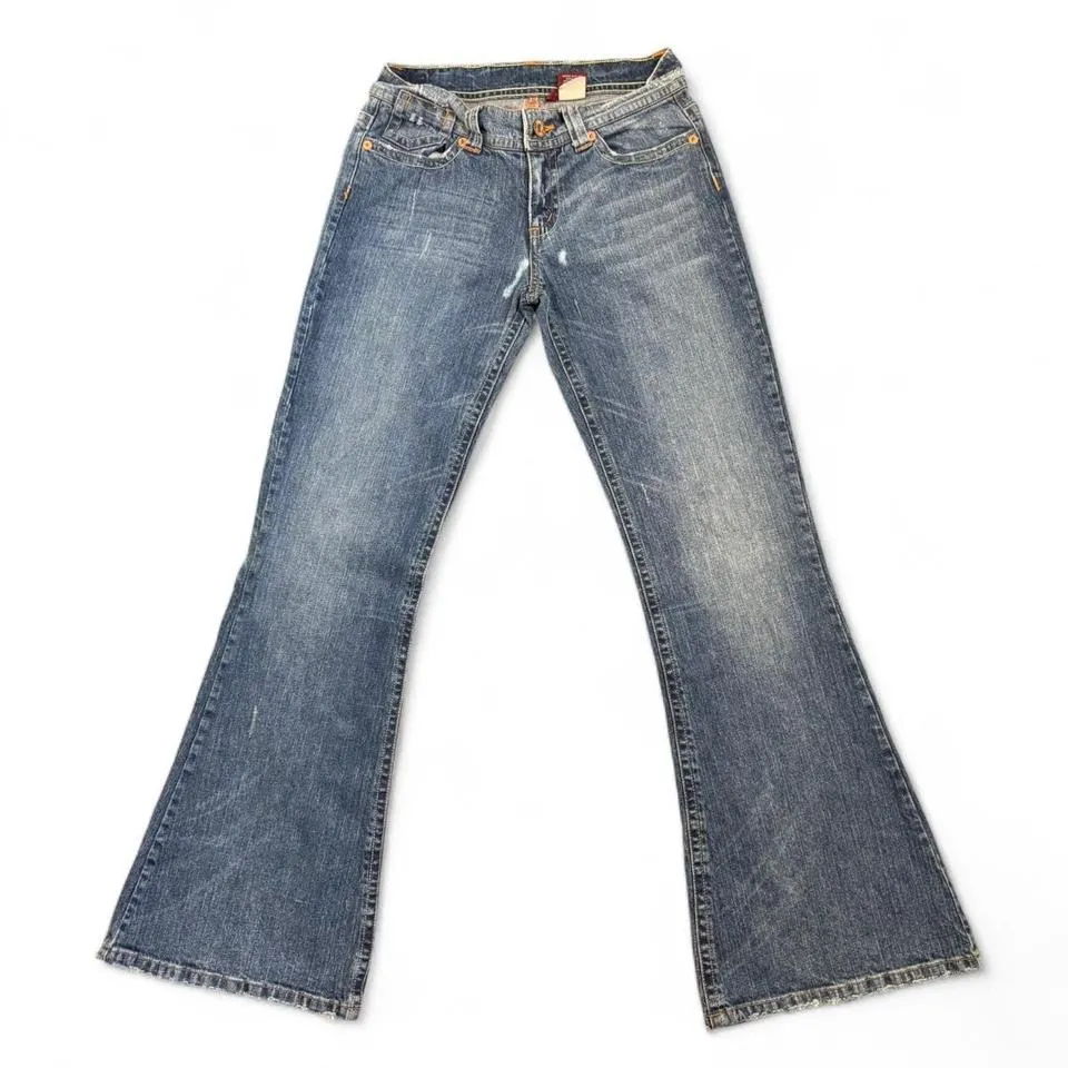 Vintage Y2K Bongo Jeans Womens 9 Mid Rise Flare Distressed Blue Denim Jeans Buttons Good condition... Show more