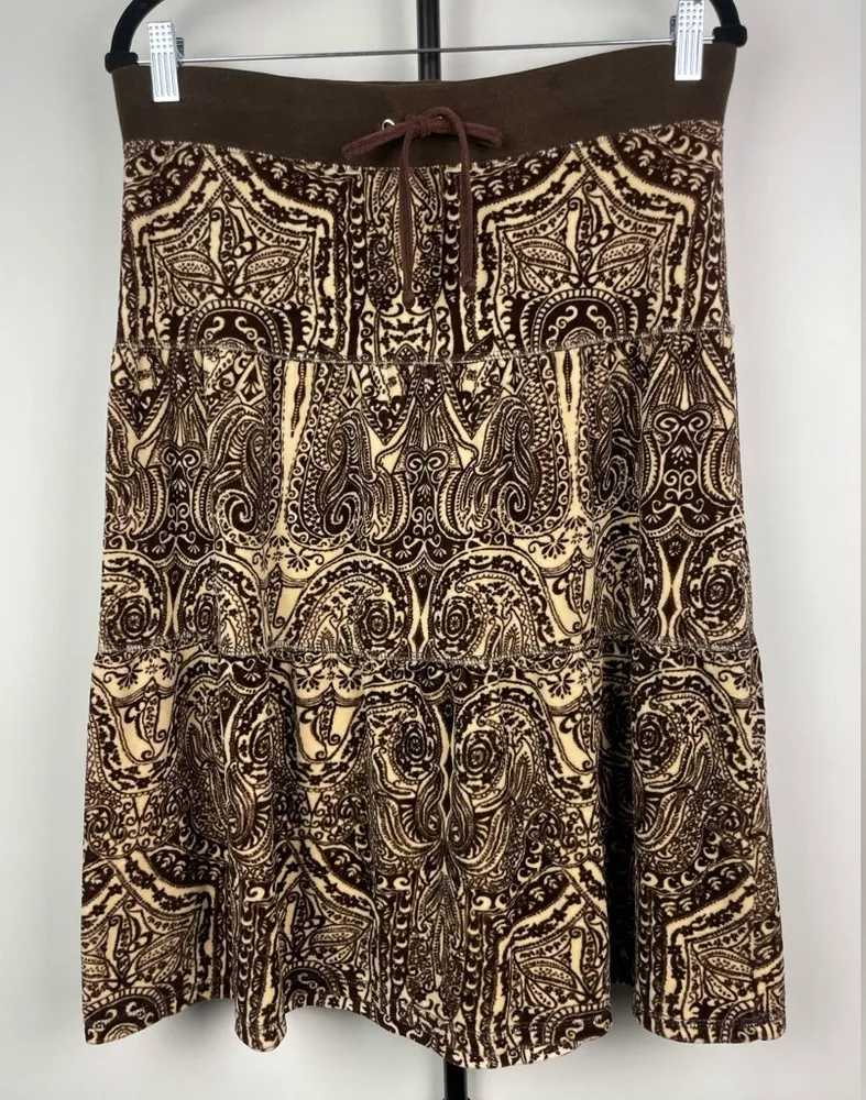 Vintage Y2K Brown Juicy Couture Paisley Pattern Velour Velvet Tiered Skirt Nice used condition No... Show more