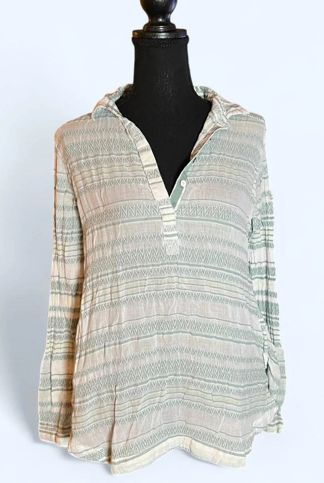 Vintage Y2K Columbia White and green striped long sleeve shirt with a relaxed fit Size Medium Brand... Show more