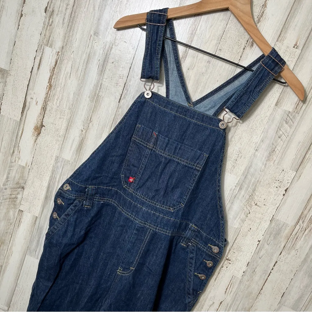great preowned condition. womens large. dark wash denim. waist: 20" hips: 23" Inseam: 32" leg... Show more