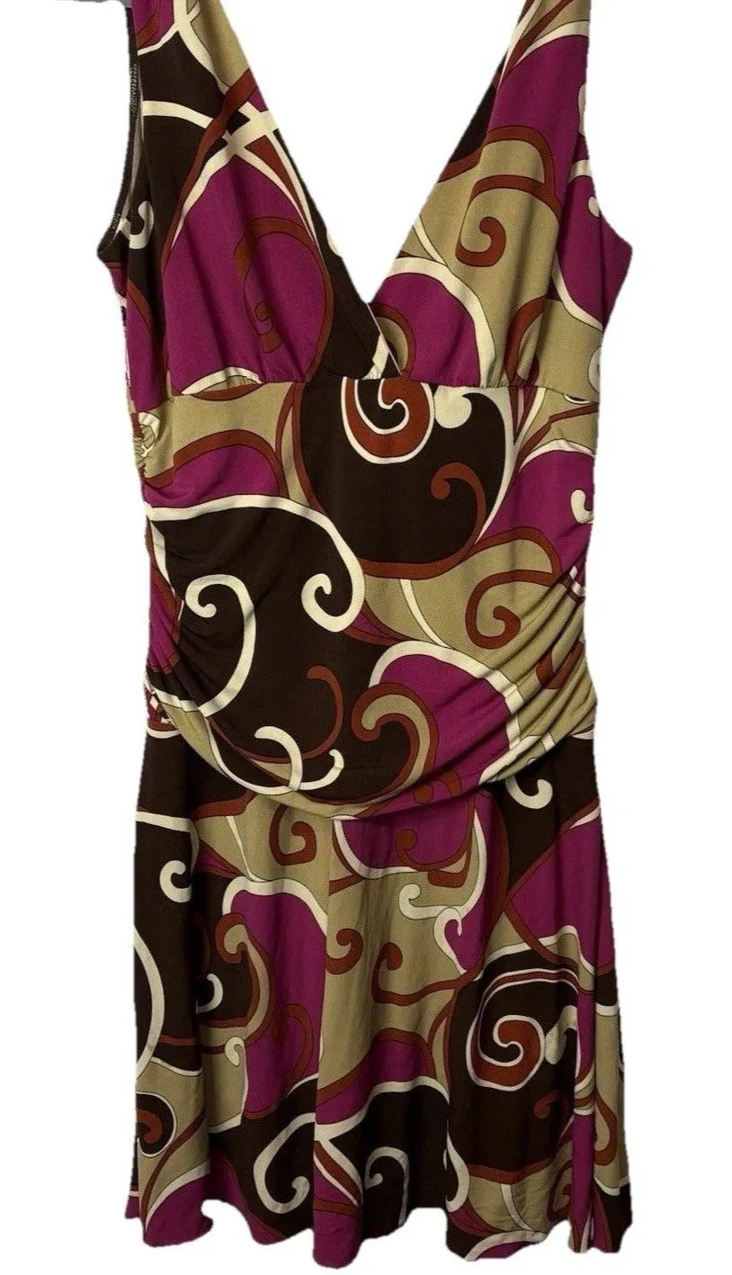 This Vintage y2k Drop Waist Midi Dress by Heart Soul is perfect for going out in the summer. The geometric pattern, sleeveless design, and V-neckline give it a unique and stylish look. Made from a knit fabric with a pullover closure, this knee-length dress features a fit & flare style with a funky and psychedelic theme. Ideal for travels or parties, this multicolor dress is machine washable and suitable for juniors. It also includes heart-shaped details, making it a perfect choice for those looking for a small art soul vibe in their outfit. Measurements (approximate, from flat lay): Pit 21" Waist 16" Hip 22" Length 41" #y2k #funky #dropwaist #70sprint #vintage