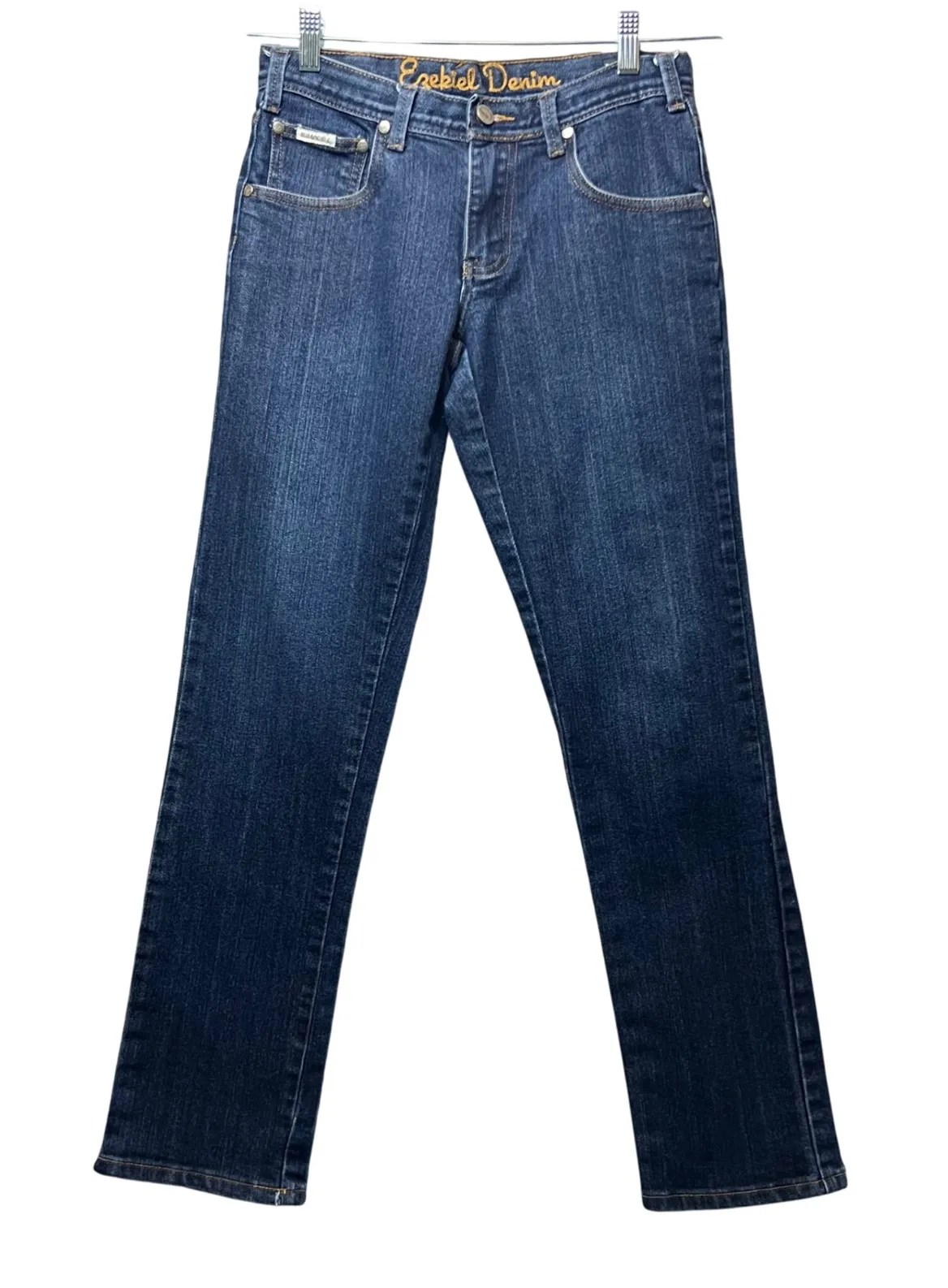 Ezekiel Jeans Size 30 There are two small cuts in the hem of one leg Color: Blue Style: Straight Type: Jeans Fit: Slim Waist Size: 30 in Fabric Type: Denim Model: Rolling Stone Fit Features: Pockets, Stretch, Comfort Material: Cotton, Polyester, Cotton Blend Fabric Wash: Dark Closure: Button, Zip Keywords: Ezekiel jeans, denim jeans, dark wash jeans, size 30 jeans, rolling stone fit, tight seat jeans, straight leg jeans, casual jeans, designer jeans, stylish jeans, blue jeans, classic jeans, comfortable jeans