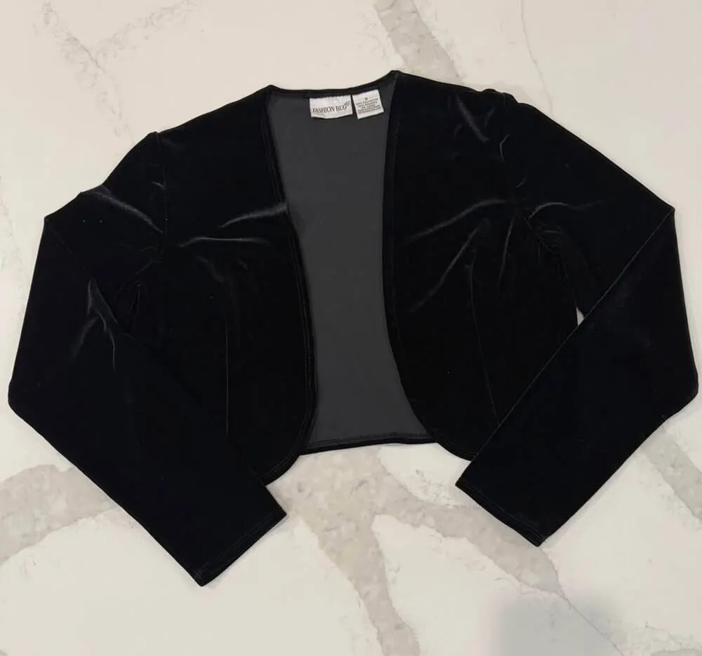 Vintage y2k Fashion Bug Black Velvet Cropped Shrug Women’s Size 8 Dress Jacket - Bolero - Formal In good condition! #vintage #y2k #fashionbug #velvet #cropped #coquette #formal #prom #homecoming #dance #event #specialoccasion