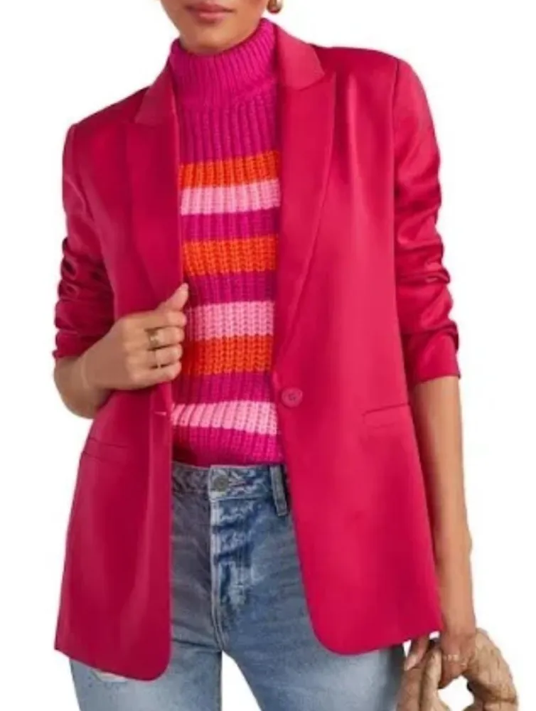 VINTAGE size 6 Collectible Gold by Giorgio Sant'Angelo (Italian/Argentinian fashion designer, 1968 & 1970 American Coty Fashion Critic's award) Made in Egypt stunning vintage but totally modern and contemporary blazer jacket with shoulder pads and straight long design. Brand new never worn, no tags, pockets are still stitched together. Vintage quality where fast fashion didn’t exist and clothes were made for years. Pit to pit 19” flat Length 29”