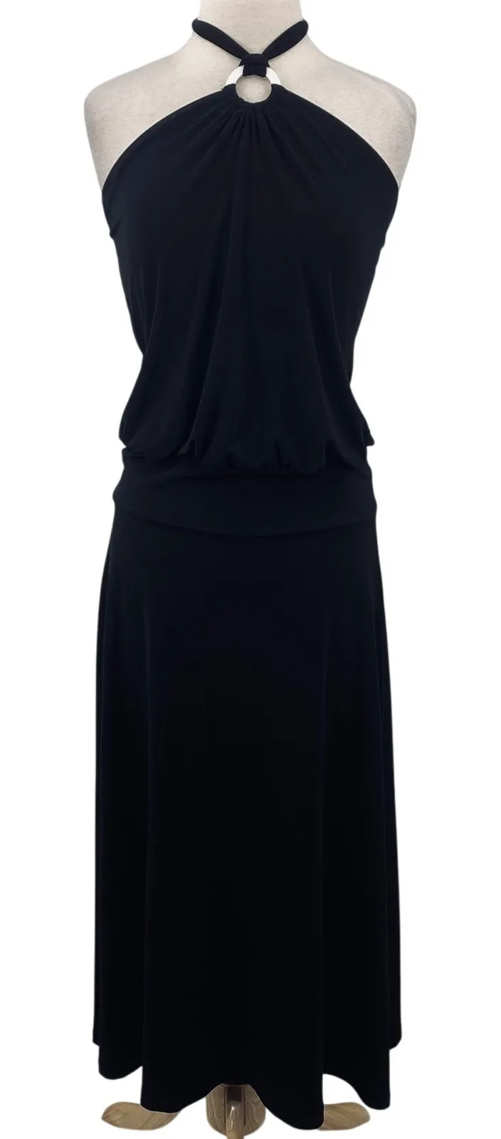 Vintage Y2k Halter O Ring Maxi Dress Blouson Bodice Stretch Knit Black Brand: Georgiou Studio *Best... Show more