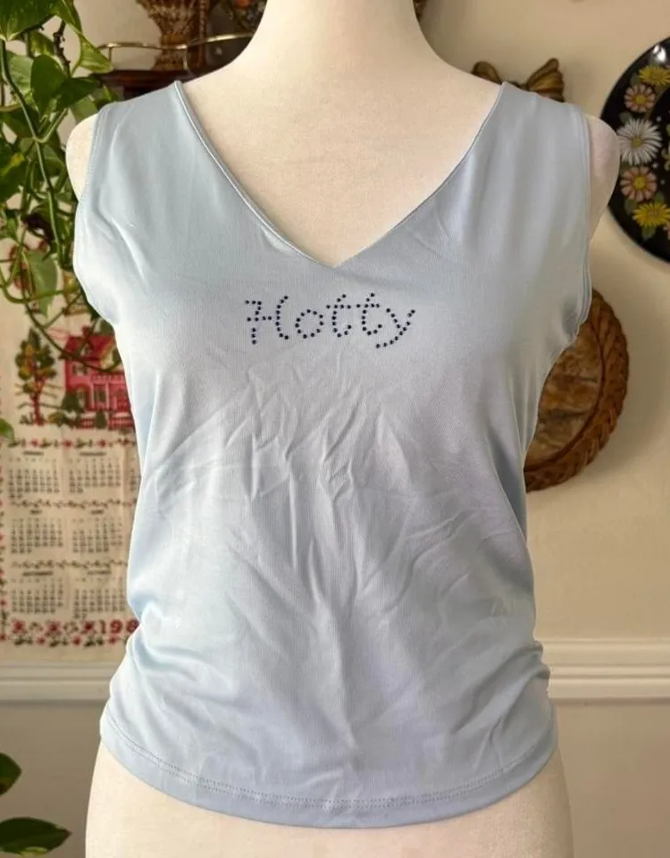 Vintage Y2K Hot Spice "Hotty" Baby Tank Top Blue Rhinestones Glam Graphic Tee Size L - $21 - From Kelly