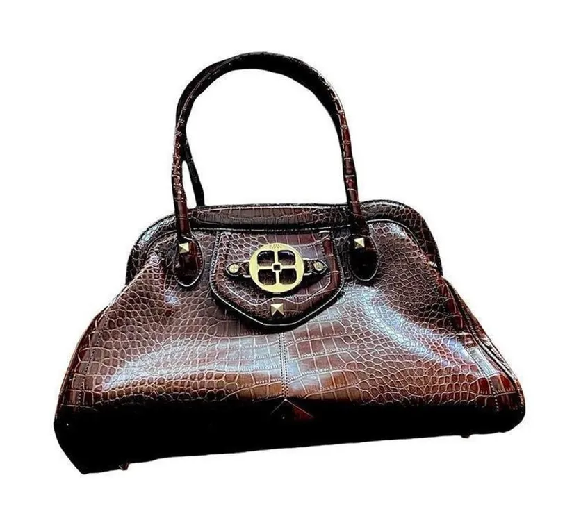 Vintage y2k Iman chocolate brown faux reptile satchel handbag. This is in like new condition. Measures 10 1/2” tall at base is 16 3/4” in length. Full zipper closure on top zipper closure inside with 2 open pockets on inside also.Double handle. Flat bottom with feet.