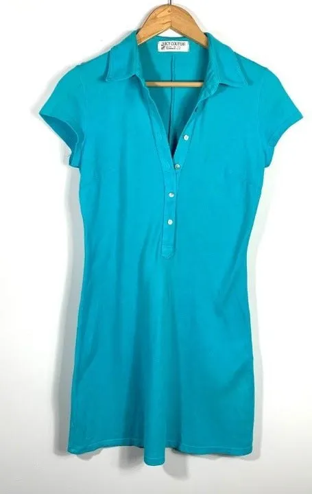 Vintage Y2K Juicy Couture Mini Polo Dress Baby blue dress with cap sleeves and polo collar neck lin... Show more