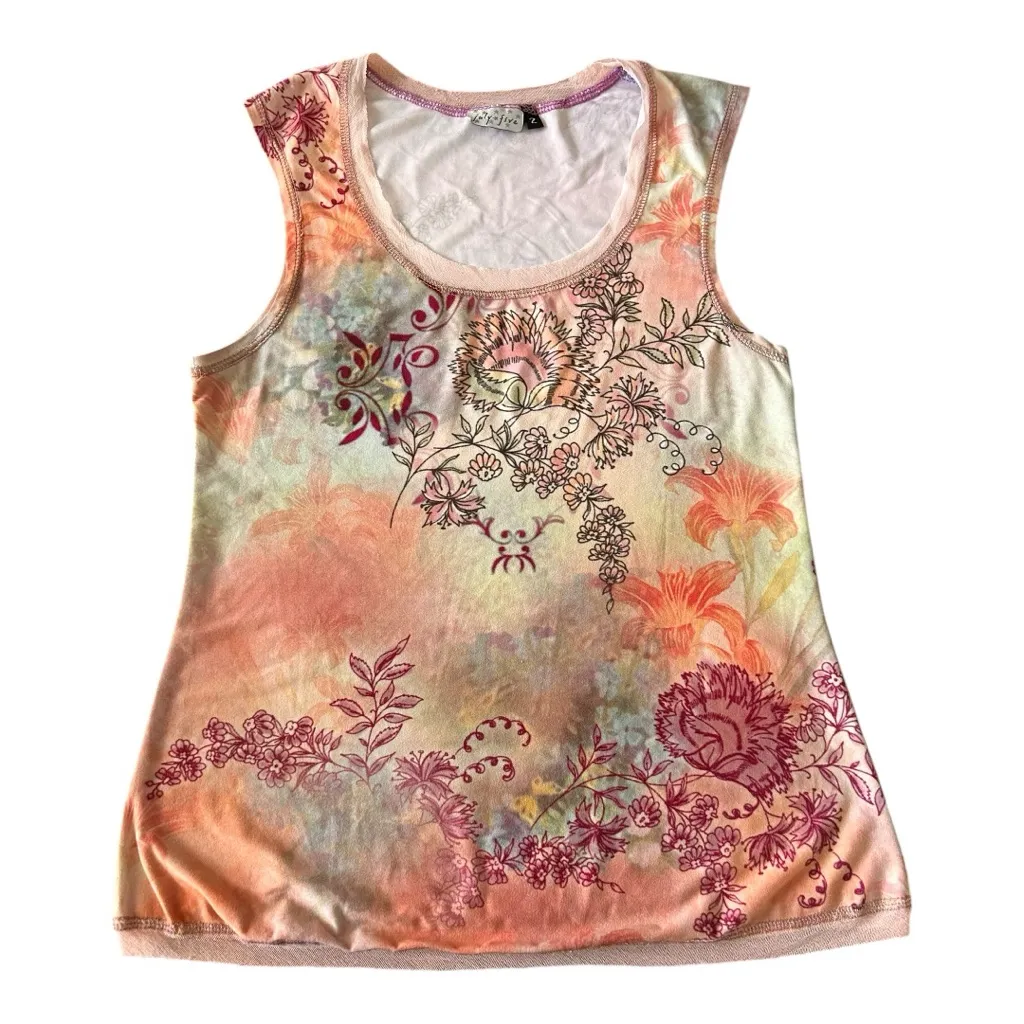 Vintage Y2K July Five Telluride floral pink tank with mesh trim Size 2 Small - $18 - From Midmom