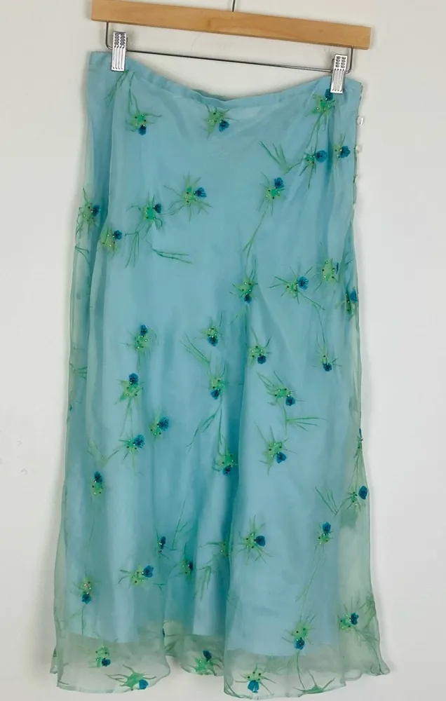 Vintage Y2K Nicole Miller Collection black as cut 100%silk.pale aqua blue color. Sheer organize over... Show more