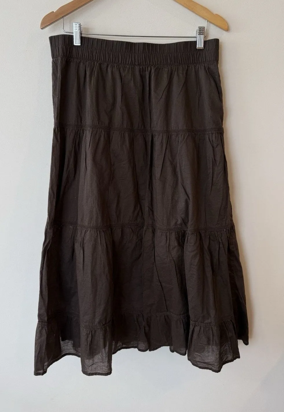 Vintage Y2K Old Navy Lined Tiered Midi Skirt in brown is a stylish piece perfect for women who love... Show more