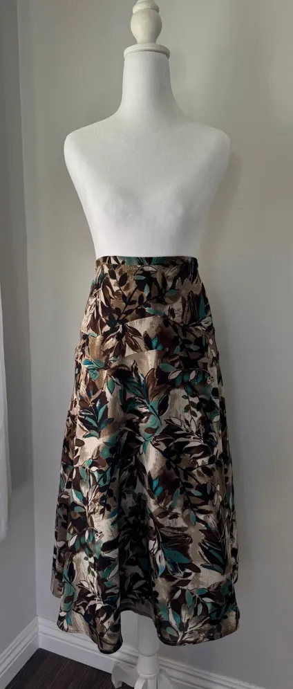Waist measures 17 1/2 inches across, length is 30 inches from center of waistband to bottom hem. The size tag is a L, but it runs large and fits more like an XL or XXL. I would recommend comparing the above measurements with something you own to determine how it will fit! In excellent pre-owned condition.