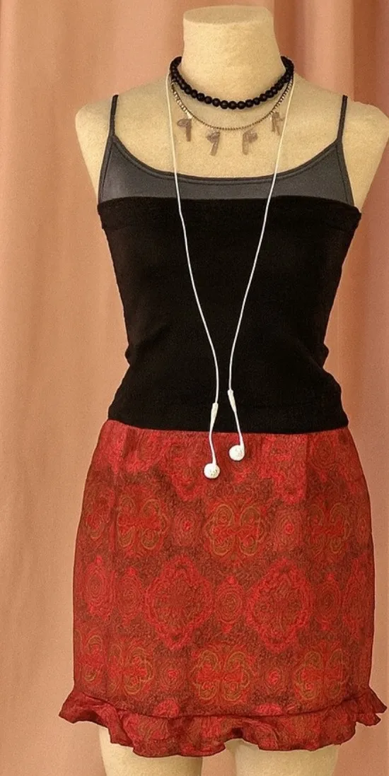 Vintage Y2K Stringbean Womens silky Satiny floral/paisley medallion printed ruffled hem a-line skirt... Show more
