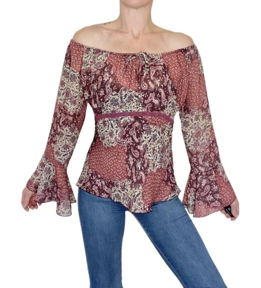 Vintage Y2K Studio Y Red Burgundy Paisley Bohemian Flare Sleeve Blouse Size L - $15 - From Natalie