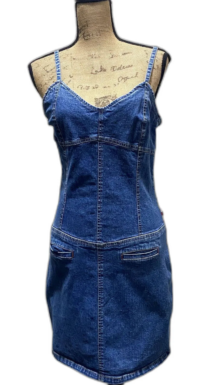 Vintage Y2K Tommy Hilfiger Denim Mini Dress Fitted Stretch Americana Size Large Gently used conditi... Show more
