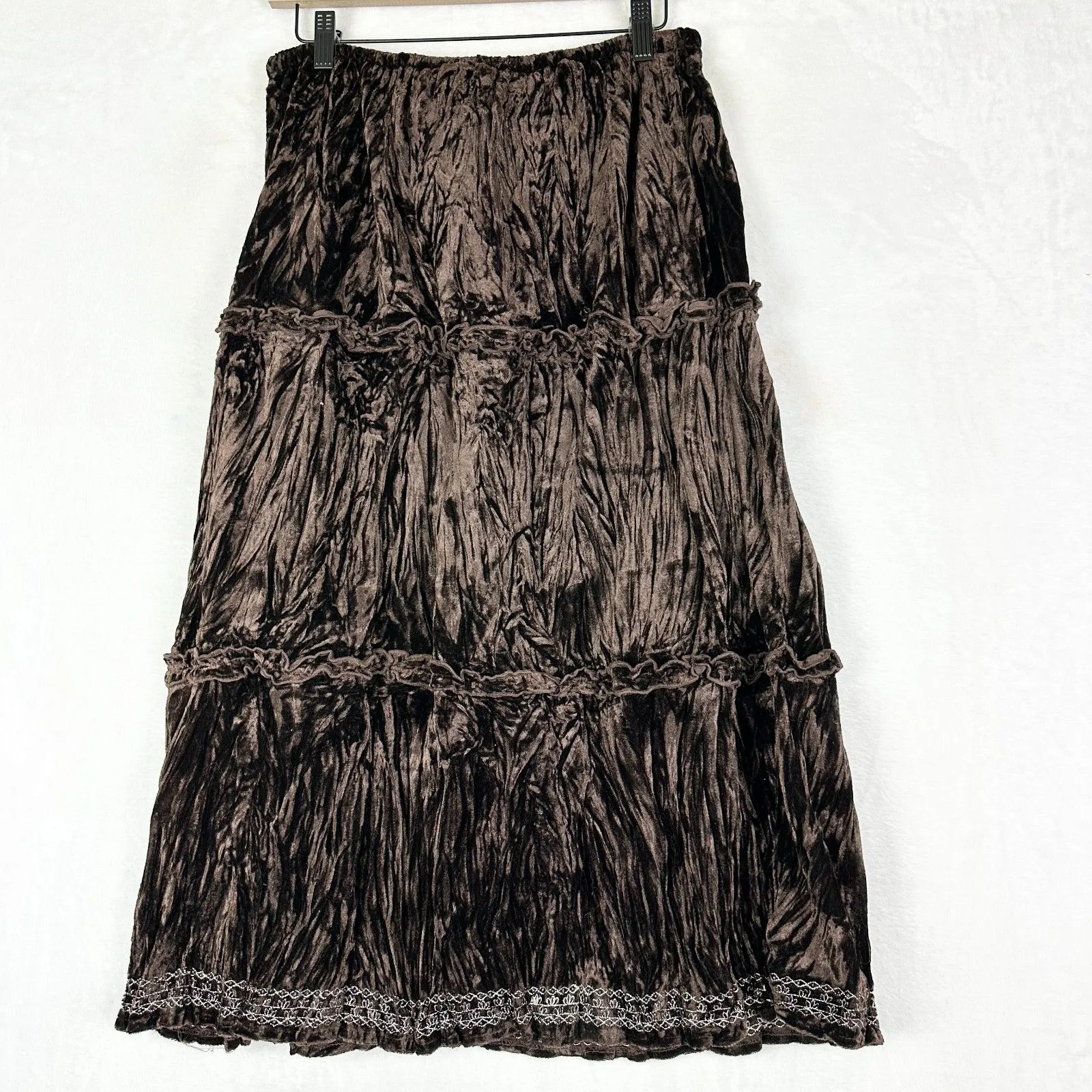 Vintage Y2K Velvet Tiered Midi Skirt Size Large Brown Boho Whimsigoth Fairy - $45 - From Samantha