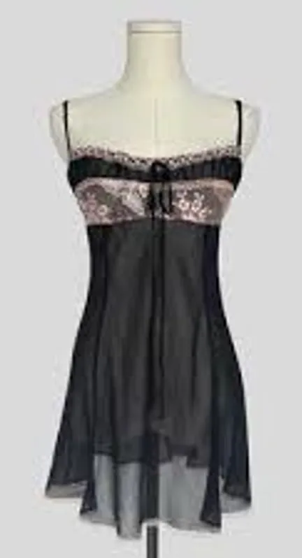 Vintage '02 Victoria's Secret sheer silk chemise Black and baby pink Chiffon and lace Very gently... Show more